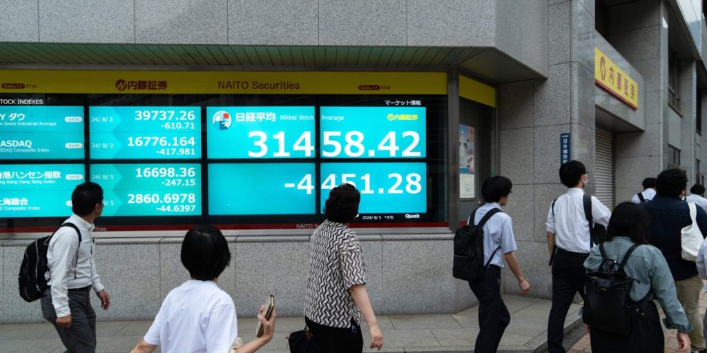 Japan’s main stock-market index sunk 12.4% on Monday, while US stock futures were also lower. The Nikkei 225 suffered its