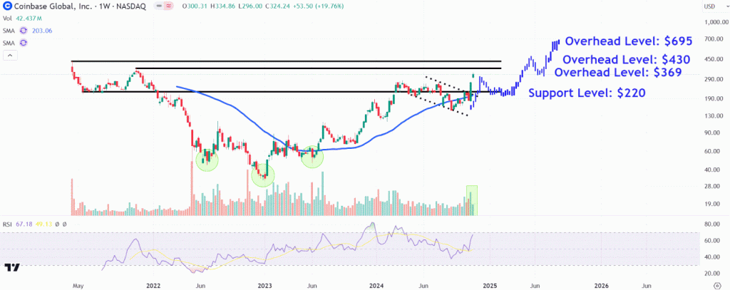 Key Takeaways Coinbase shares surged 20% to a three-year high Monday as investors bet that higher trading volumes and a