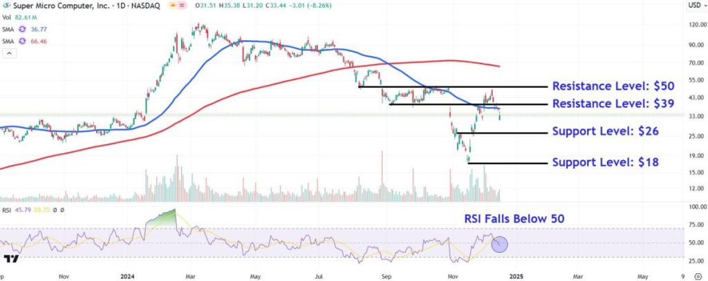 Source: TradingView.com Super Micro Computer shares moved higher in premarket trading Tuesday after plunging yesterday following news that the stock