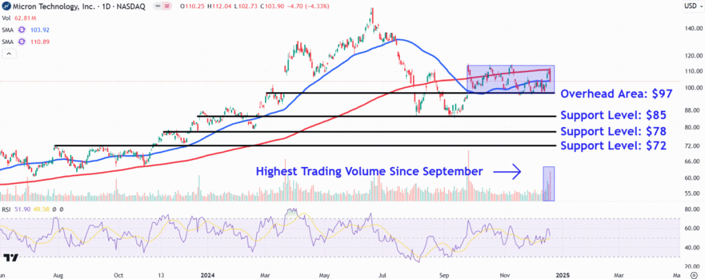 Source: TradingView.com Micron shares traded sharply lower in extended trading on Wednesday after the memory chip maker and Nvidia partner