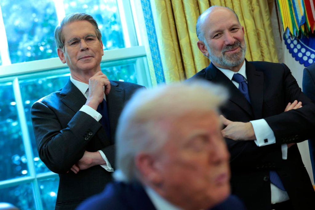 WASHINGTON, DC – APRIL 09: (L-R) U.S. Treasury Secretary Scott Bessent and Secretary of Commerce … More Howard Lutnick look