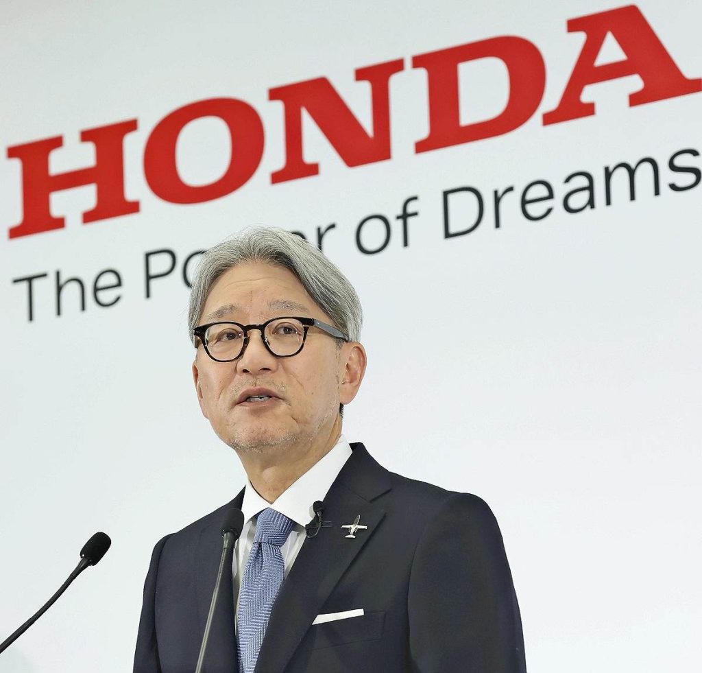 The Yomiuri ShimbunHonda Motor Co. President Toshihiro Mibe speaks at a press conference in Minato Ward, Tokyo, on Tuesday.