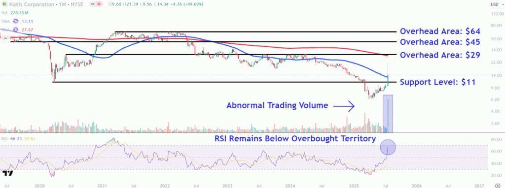 Key Takeaways Kohl’s Corp. shares surged nearly 40% on Tuesday in the absence of news on the retailer, a move