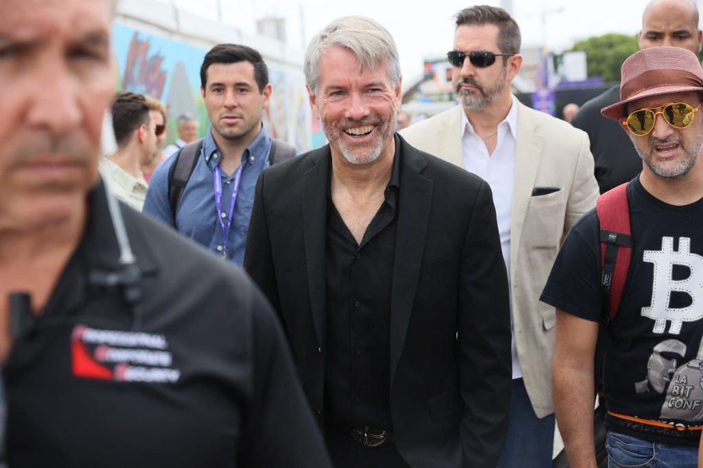 MIAMI, FLORIDA – JUNE 04: MicroStrategy CEO Michael Saylor walks through the Bitcoin 2021 … More Convention, a crypto-currency conference