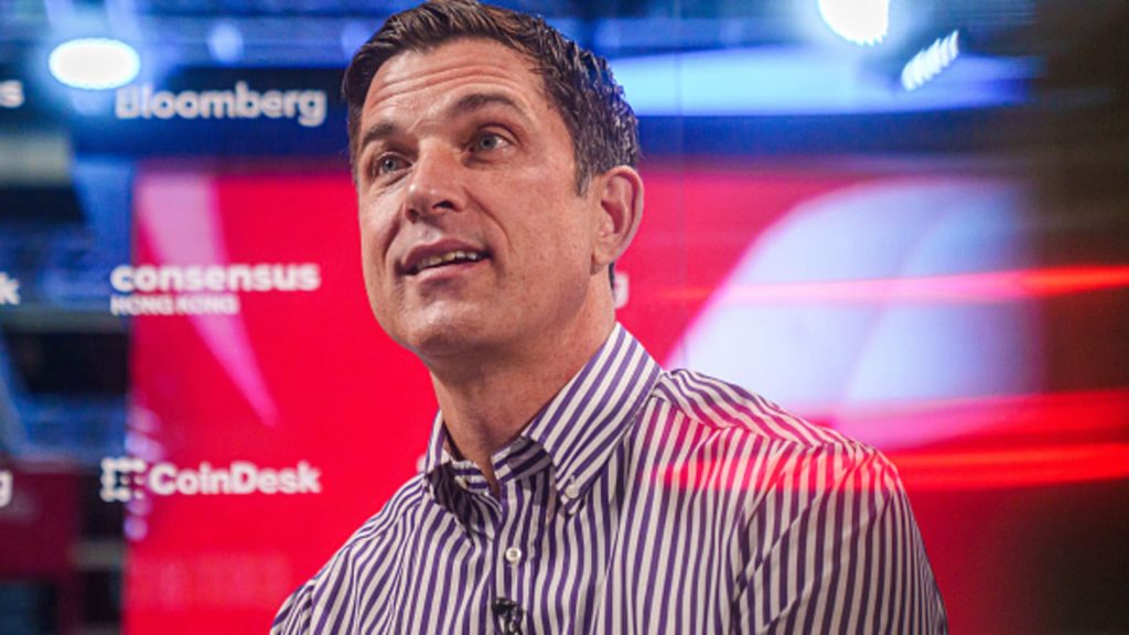 Tom Farley, chief executive officer of Bullish Global, during a Bloomberg Television interview on the sidelines of the Consensus Crypto