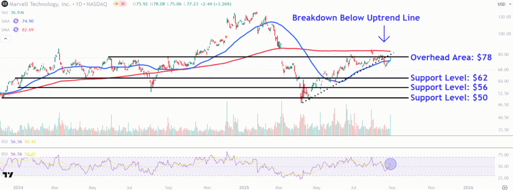 Key Takeaways Marvell Technology shares plunged Friday after the chip designer issued a sales forecast below Wall Street’s expectations. The