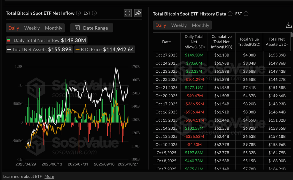 Bitcoin (BTC) shows signs of resuming its uptrend above $114,000 on Tuesday, after being rejected slightly below $116,500 the previous