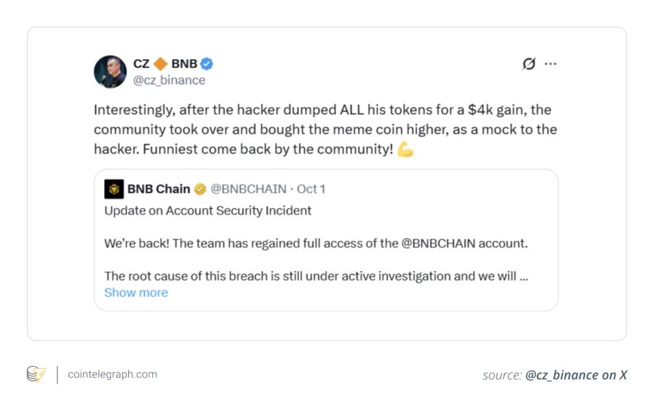 The trigger was the hack of BNB Chain’s X account, which spawned “4.”