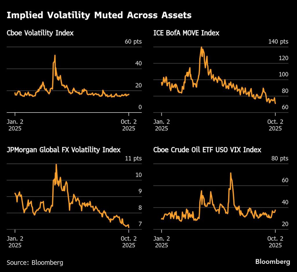 The narrow ranges — and rising risk premium — can be pinned on different factors depending on the market. Rate-cut expectations are driving gold, supply and demand outlooks are hemming in oil and uncertainty around the Federal Reserve, corporate earnings and retail flows are…